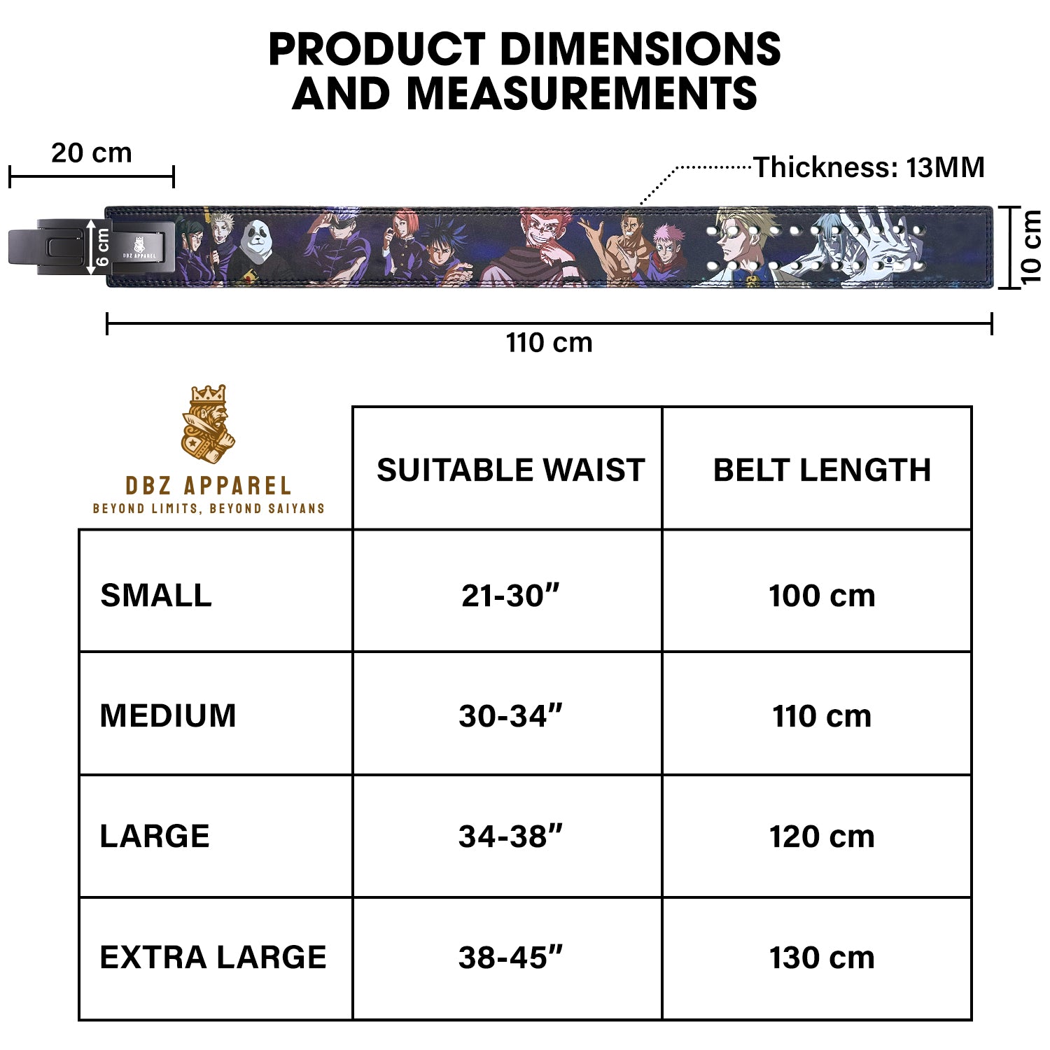 • Large: Fits 34-38” waist | Belt Length: 120 cm